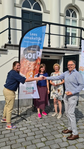 Op dinsdag 12 september deelden wethouder Judith Kuijpers en medewerkers van het Digi-Taalhuis, lettersoep uit in het raadhuis van Zundert. Tijdens deze lettersoepcampagne ‘Lees smakelijk’ gingen zij het gesprek aan met medewerkers van de gemeente over lezen, schrijven, rekenen en digitale vaardigheden. Medewerkers kregen tips hoe ze makkelijkere brieven kunnen schrijven en hoe ze laaggeletterdheid herkennen.